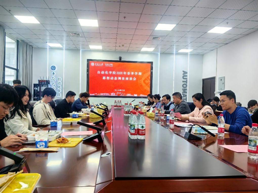 3月20日,自动化学院在信息楼330会议室组织召开“师生面对面”午餐会第二期暨2026年春季学期思想动态座谈会。学院党委书记易险峰、副书记黄亚、副院长黄科科出席会议,辅导员代表、学生代表20余人参加会议。与会学生代表围绕思想政治学习、学术科研、就业指导、校园文化、后勤服务等方面提出意见与建议,现场气氛热烈融洽。黄科科结合自身成长经历,希望同学们做到放长眼量,面向未来,积极了解社会动态,主动投身国家重点领域...