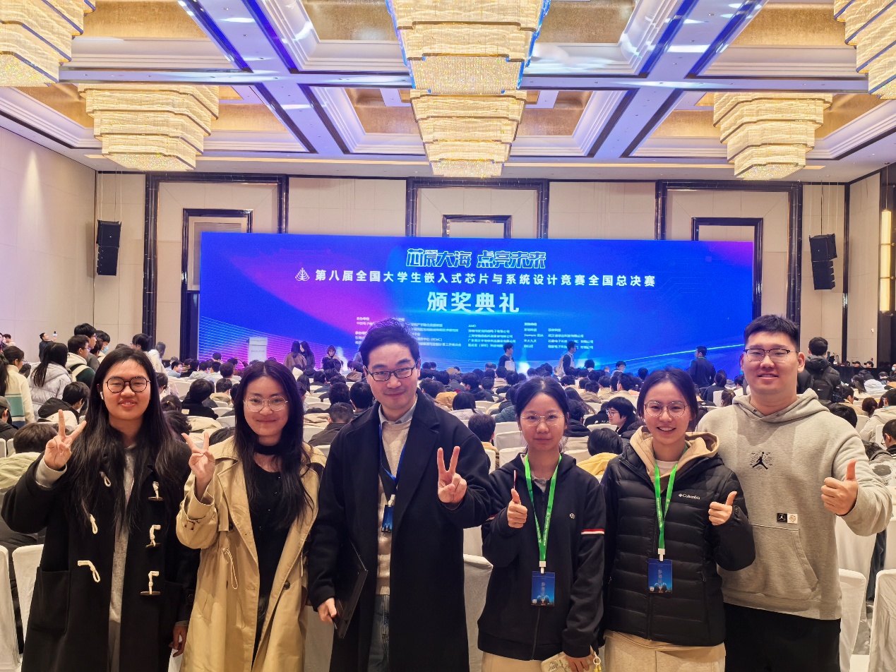 11月30日上午,第八届全国大学生嵌入式芯片与系统设计竞赛芯片设计及FPGA创新设计赛道决赛在南京江北新区闭幕。我院斩获国家奖9项,其中一等奖2项,二等奖2项,三等奖5项,中南大学获优秀组织奖。 合影留念本次大赛由中国电子教育学会主办,东南大学和南京江北新区管理委员会共同承办,参与人数突破新高,其中FPGA赛项共有342所院校、3901支队伍、10499名学生报名参赛。比赛聚焦人工智能领域热点,设计了具有创新性和挑战性的赛...