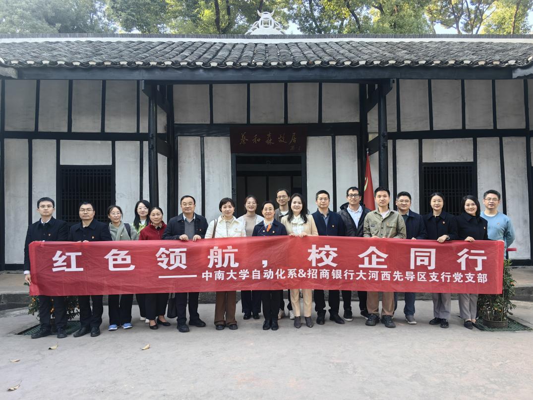 11月26日,自动化系教工党支部与招商银行大河西先导区支行党支部联合开展“红色领航,校企同行”支部共建主题党日活动,深入学习贯彻党的二十届四中全会精神,发挥基层党支部的战斗堡垒作用。两个支部党员赴新民学会旧址和招商银行长沙分行总部进行参观学习与科技交流,实现红色精神传承与前沿科技研讨的深度融合。在新民学会旧址,党员同志们认真聆听讲解,重温毛泽东、蔡和森等革命先驱在此探讨救国救民道路、酝酿建党伟业的...