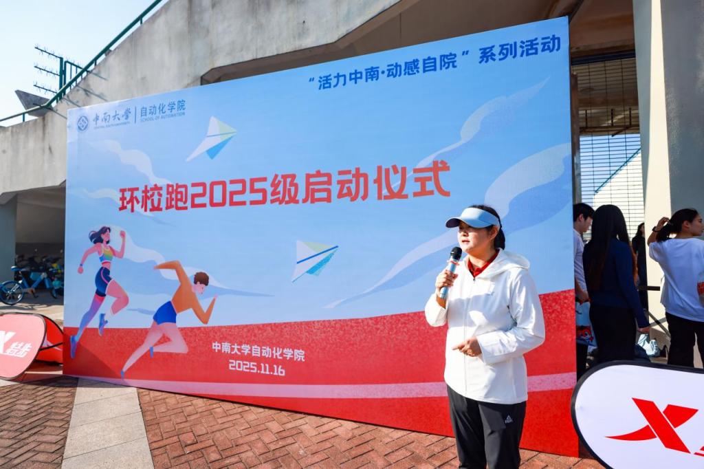 黄亚在致辞中表示,环校跑是学院“活力中南,动感自院”大学生体育素养提升体系中的基础环节,并阐述了跑步对于强健体魄、润泽心灵、增强生命韧性的三重价值;她号召同学们积极走出宿舍、走向户外,让运动成为终身良好习惯。刘文甫在讲话中指出,科学的跑步运动是通往健康生活与高效学习的重要途径,希望运动能为同学们带来快乐。