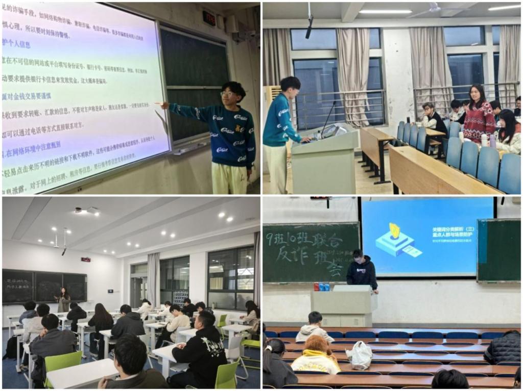 自动化学院各班级班会现场,同学们认真聆听反诈知识讲解,积极参与学习交流