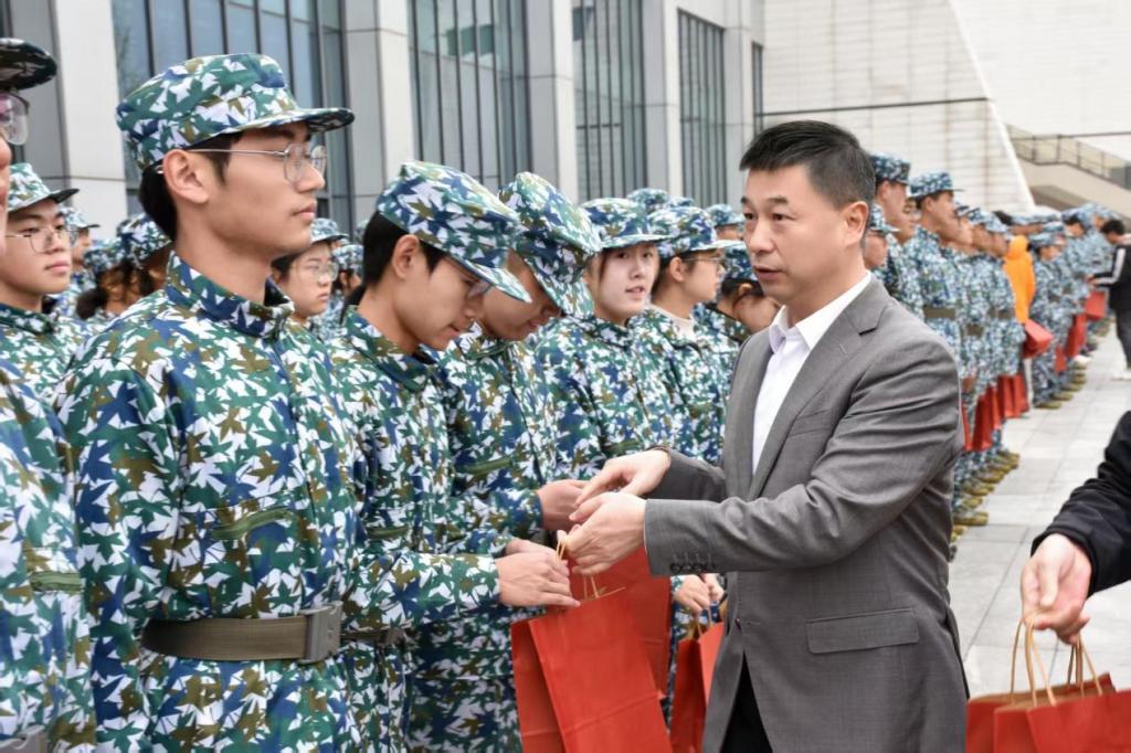 学院领导、随行教师等共同将学院精心准备的慰问品分发到每一位带训教官和参训学生手中。慰问现场气氛热烈,同学们对学院的关怀倍感鼓舞,纷纷表示将不负期望,以更饱满的热情和更坚定的意志投入后续训练任务,为开启大学生活筑牢更加坚实的基础。