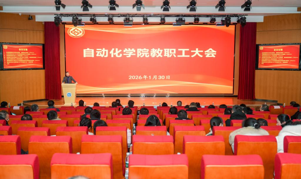1月30日,自动化学院在信息楼108报告厅召开全体教职工大会,总结2025年度各项工作,开展领导班子考核民主测评,部署近期重点工作任务。会议由学院党委书记易险峰主持,校党委组织部副处级组织员王建新到会指导。